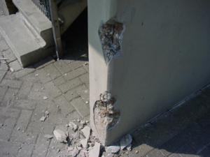 Betreft: EsthetischOmschrijving: Met de rolsteiger tegen de muur aangereden. |